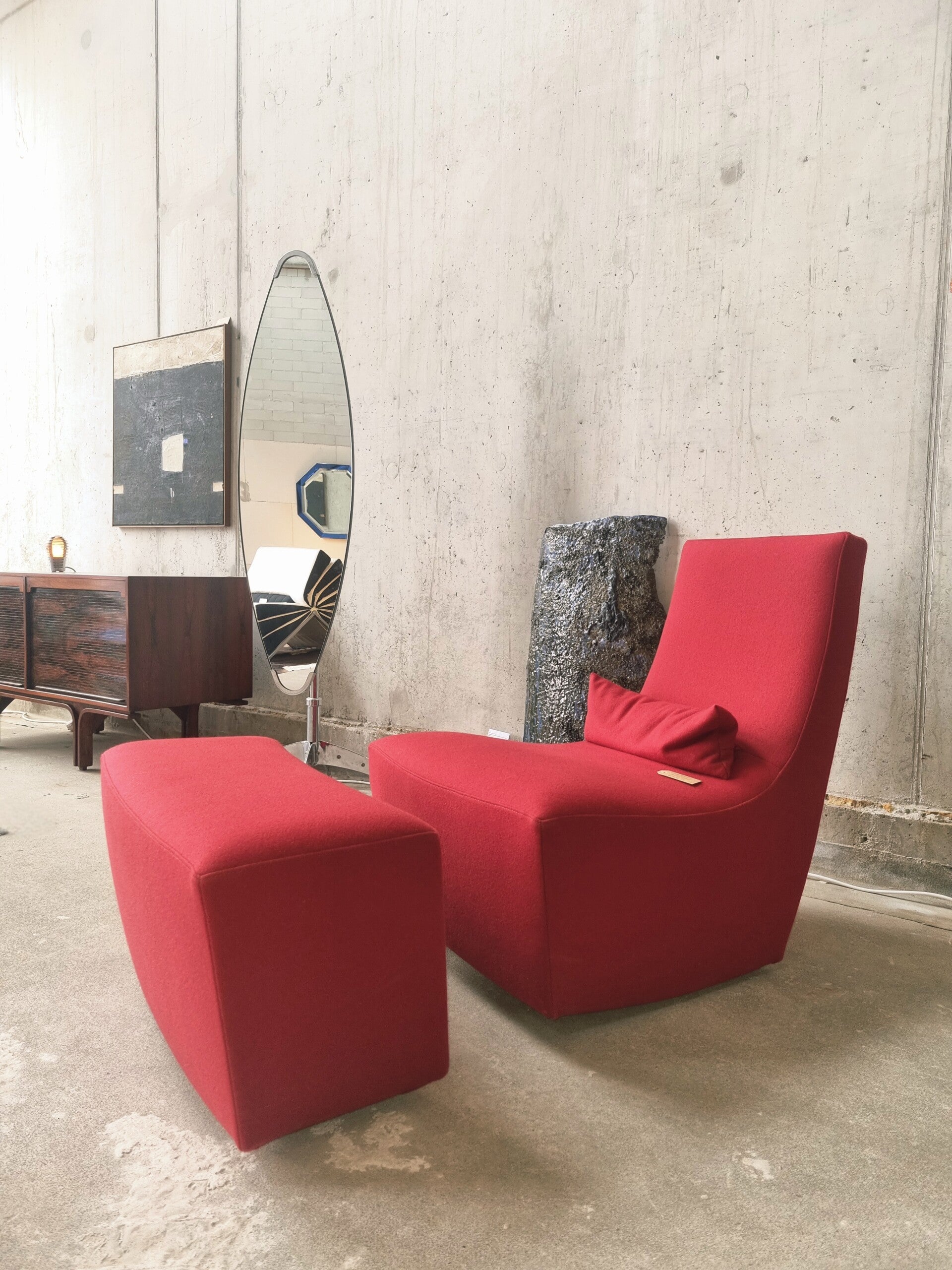 Loungechair in pink velvet designed by Tito Agnoli, Italy 1980s (2 available)