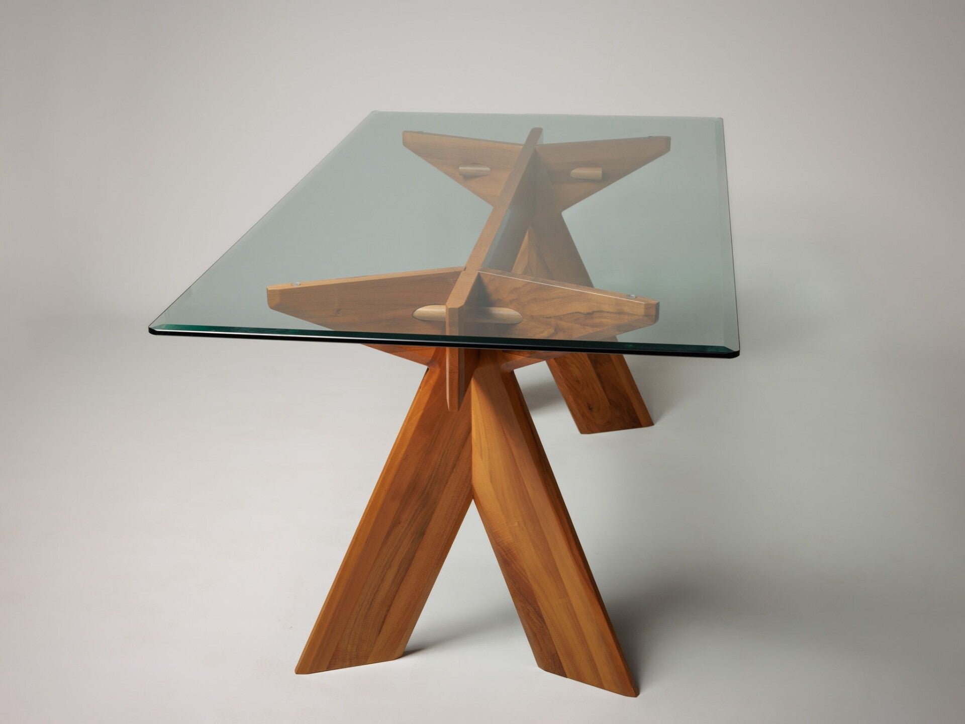 Dinning table made from walnut and glass top, Italy 1980s