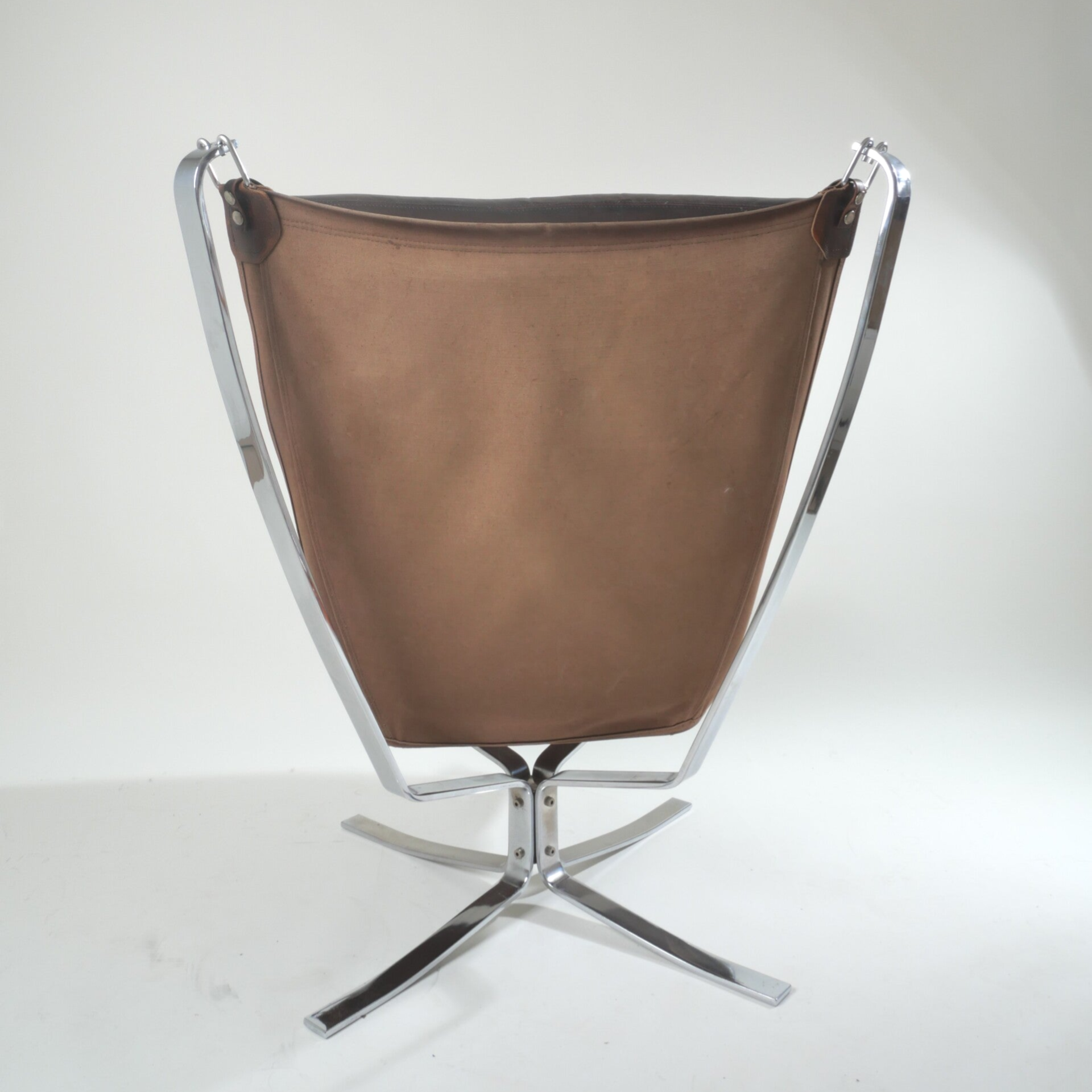 Brown leather, chrome framed Falcon chair by Sigurd Resell for Vatne Mobler, Norway 70's
