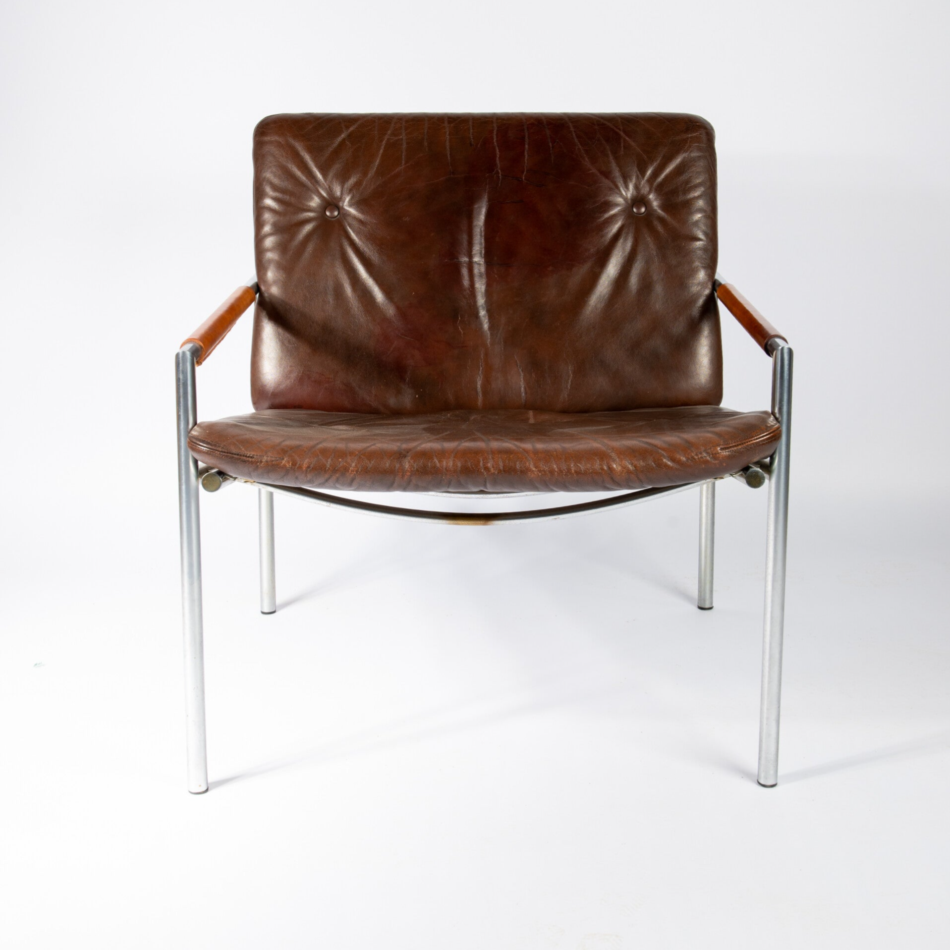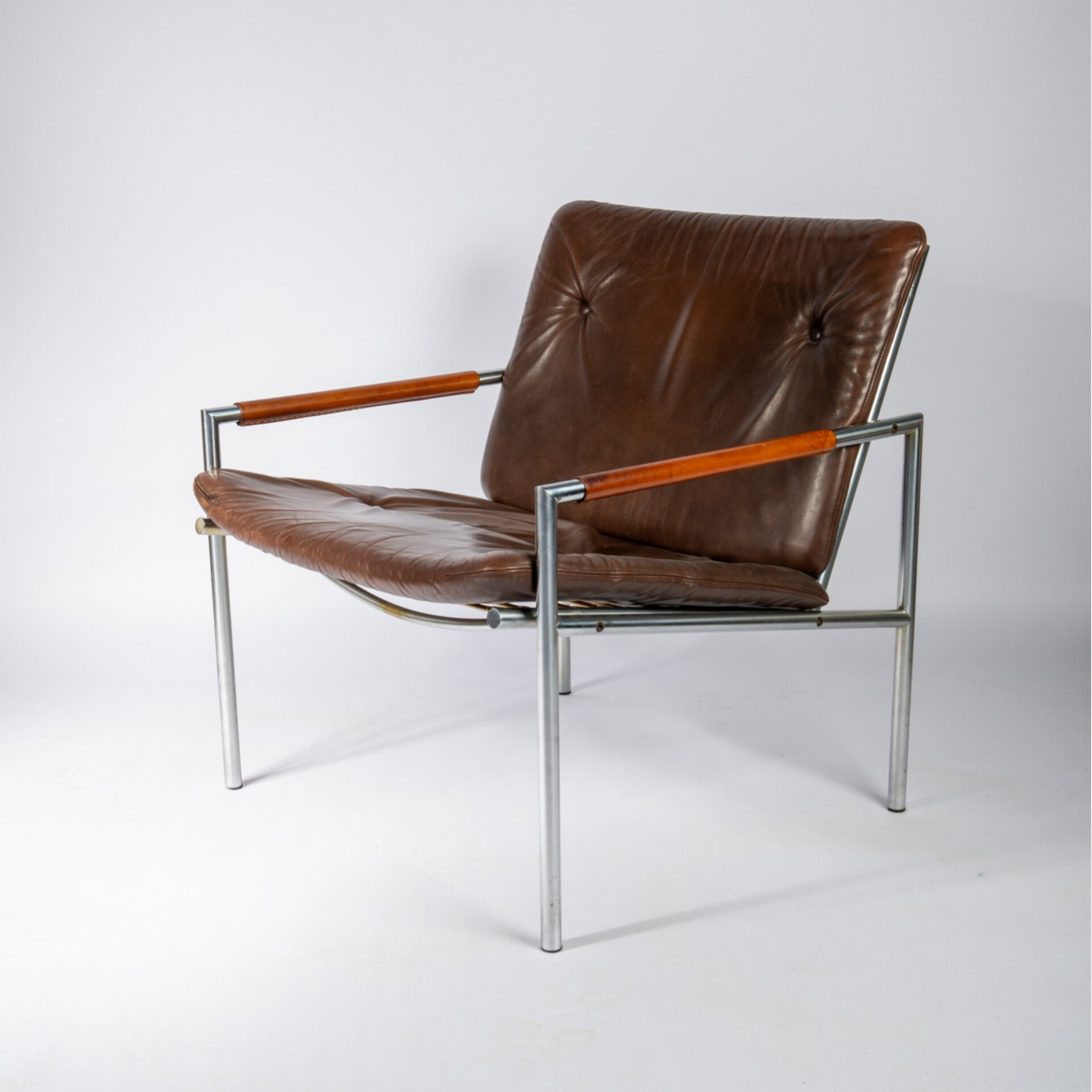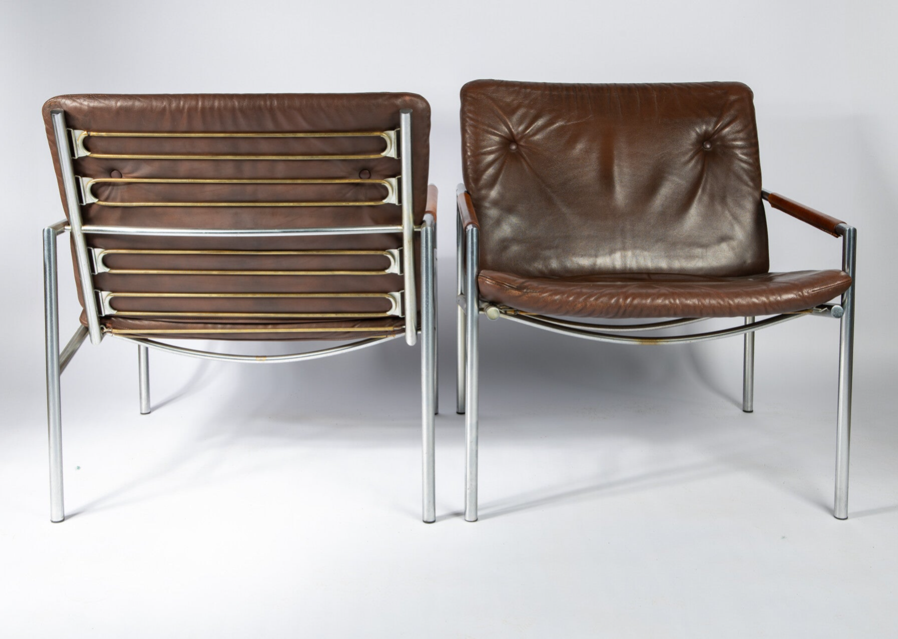 We acquired these 2 beautiful chairs from an elderly gentleman who bought these in the 70's. After some slight restoration on the armrests and the leather we are proud to have them now in our showroom in Rotterdam, Netherlands.