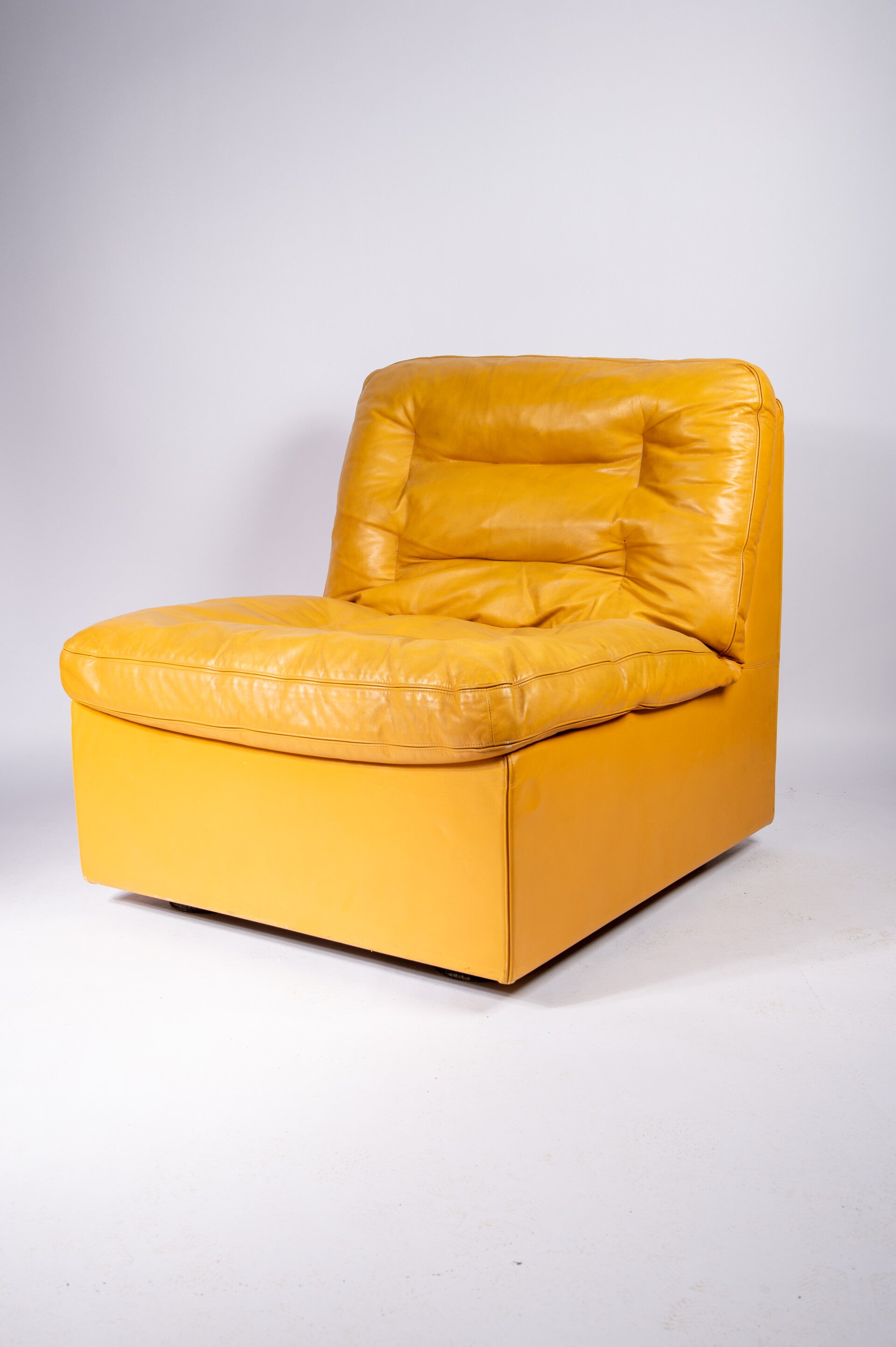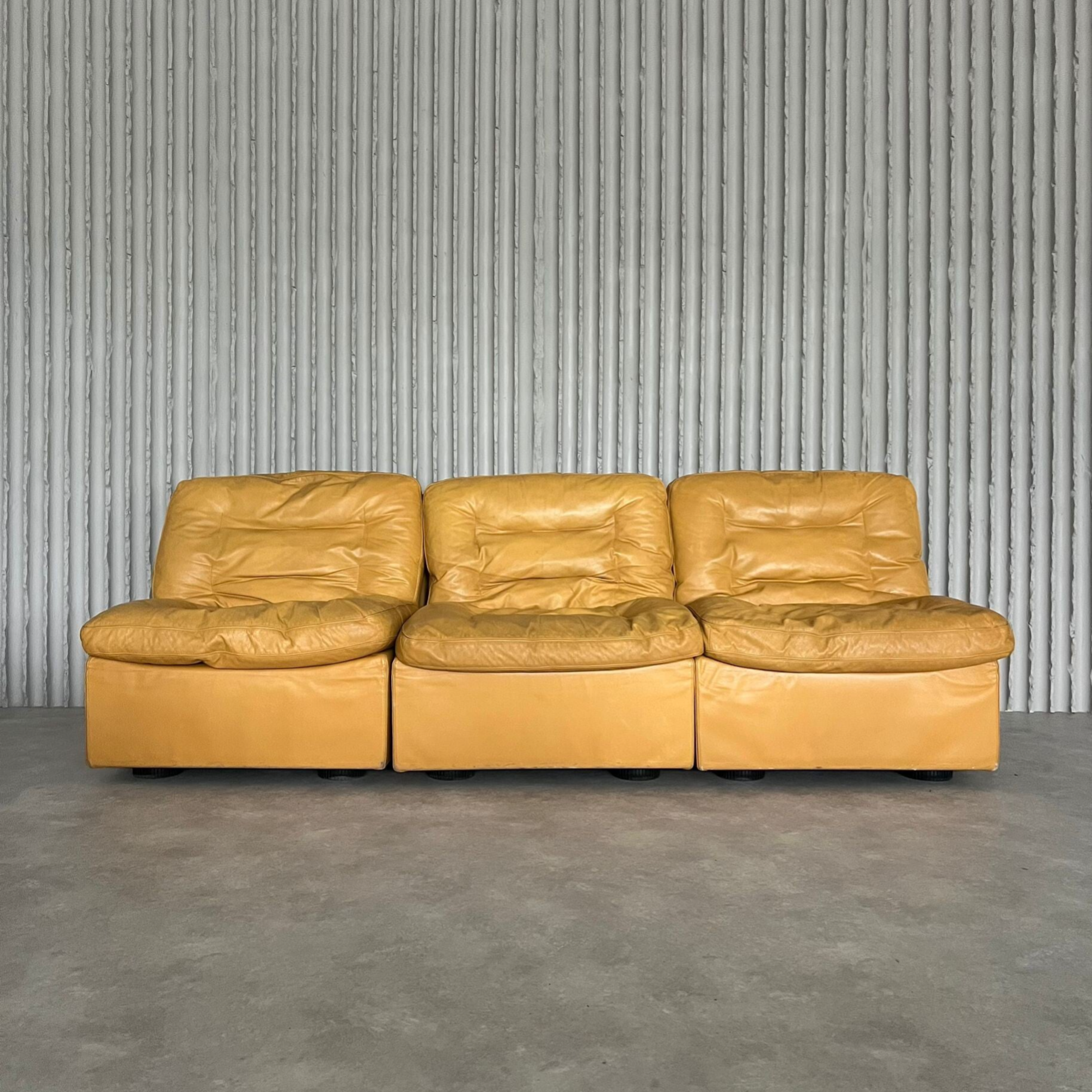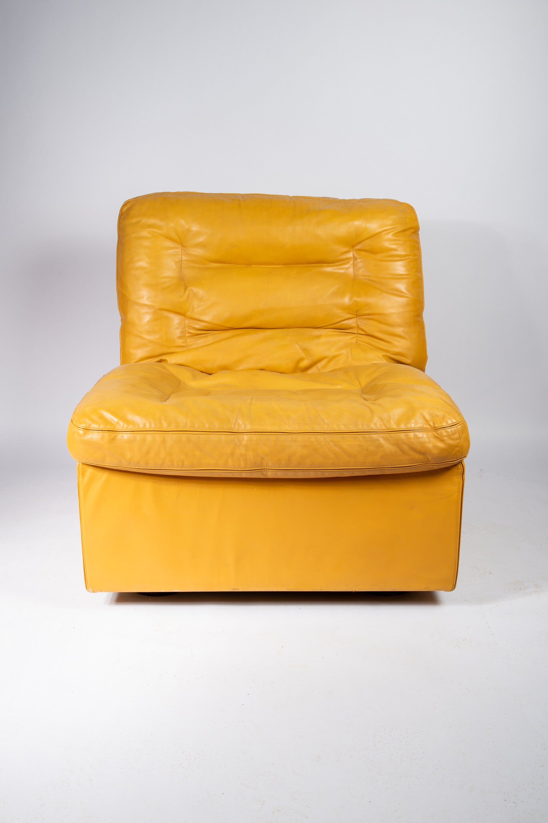 Celesta modular sofa in ochre yellow leather, designed by De Pas, D’urbino and Lomazzi for Zanotta and produced in Italy in the 1970s.